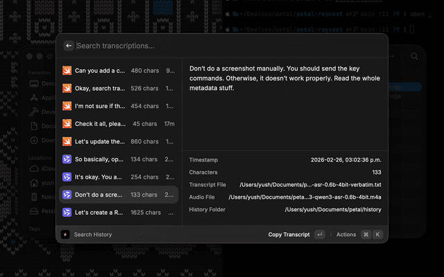 Control the Petal macOS app from Raycast.