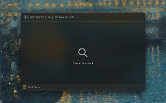 Quickly check the status, MOTD, version, latency, player count, and list of players (when available) of Minecraft servers! Supports Java and Bedrock servers.