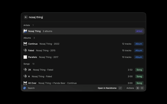 Search and browse your Navidrome music library directly from Raycast.