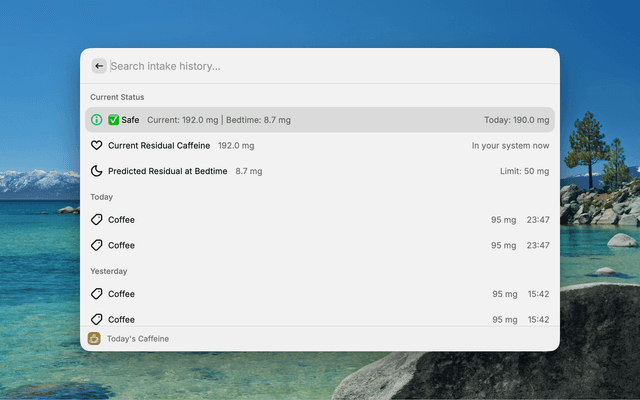 Track your caffeine intake and predict residual levels in your body to make informed decisions about whether you can safely consume more caffeine.